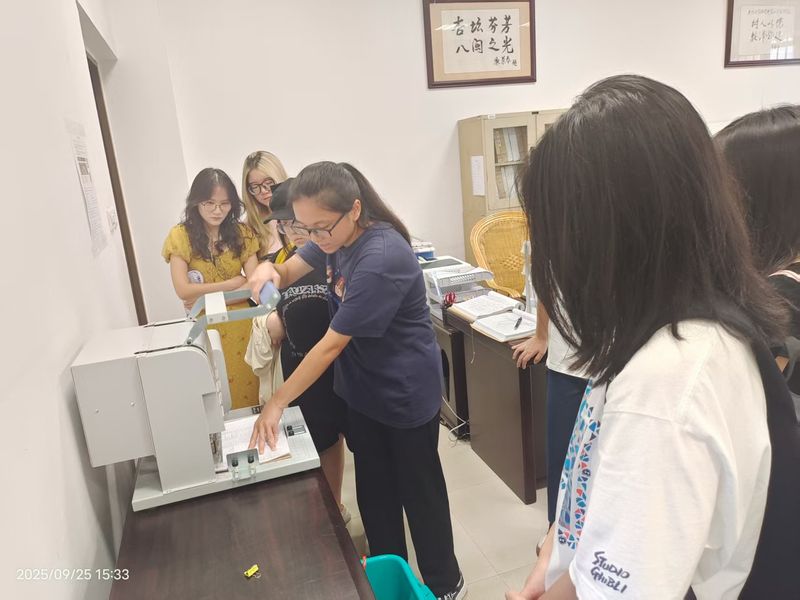 档案室高度重视此次活动,精心组织,统筹安排,同时借助此次活动检验2022级档案专业实习所学,活动具体由实习生组织开展,她们结合档案管理学的基本理论知识,介绍档案库房的基本概况,并根据实习掌握的档案业务技能,讲解学籍档案和照片档案的数字化扫描与归档全流程,并现场演示传统“三孔一线”装订方式与打孔机的使用等专业技能。